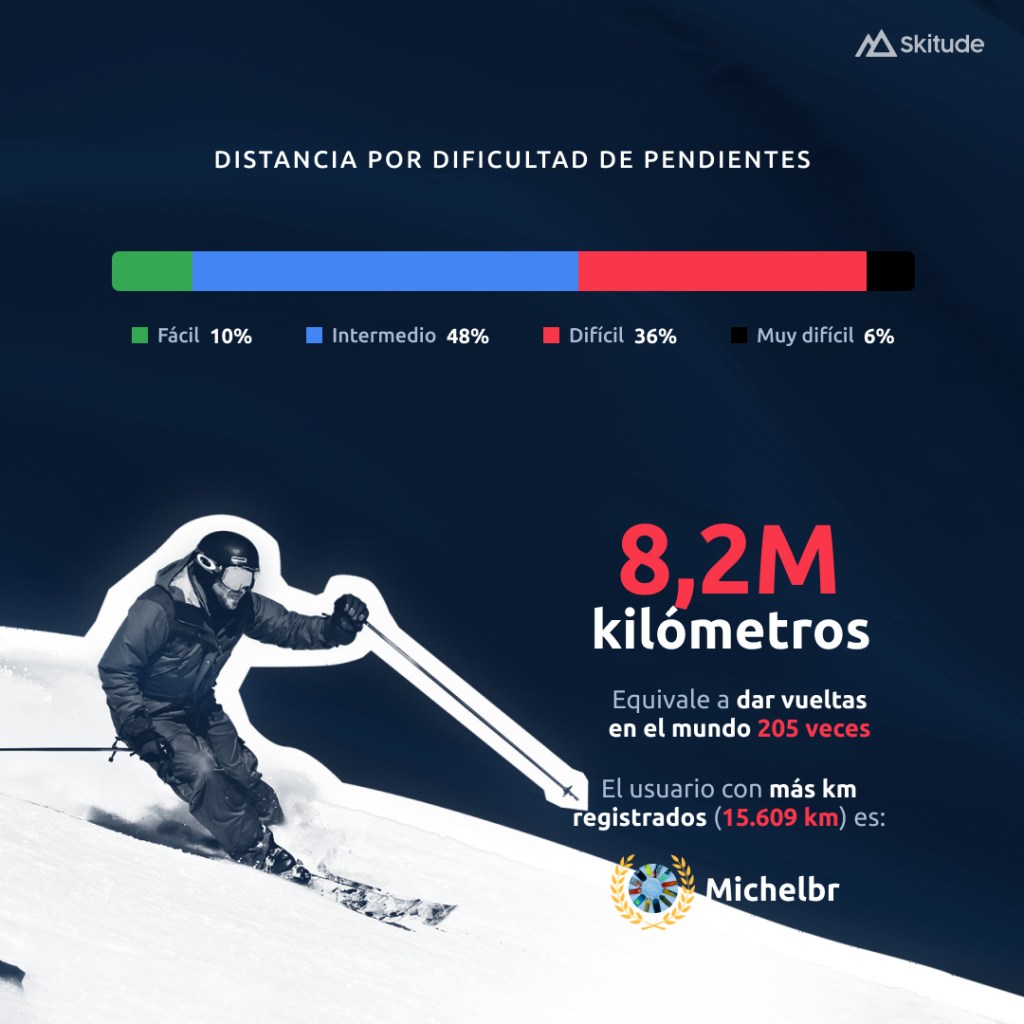 Nos enorgullece compartir que en esta temporada, tuvimos más usuarios activos y una mayor participación de todas partes del mundo. Estamos emocionados de ver el continuo crecimiento de la comunidad y la dedicación de los usuarios para disfrutar de la nieve y las pistas, y para compartir sus experiencias con otros.